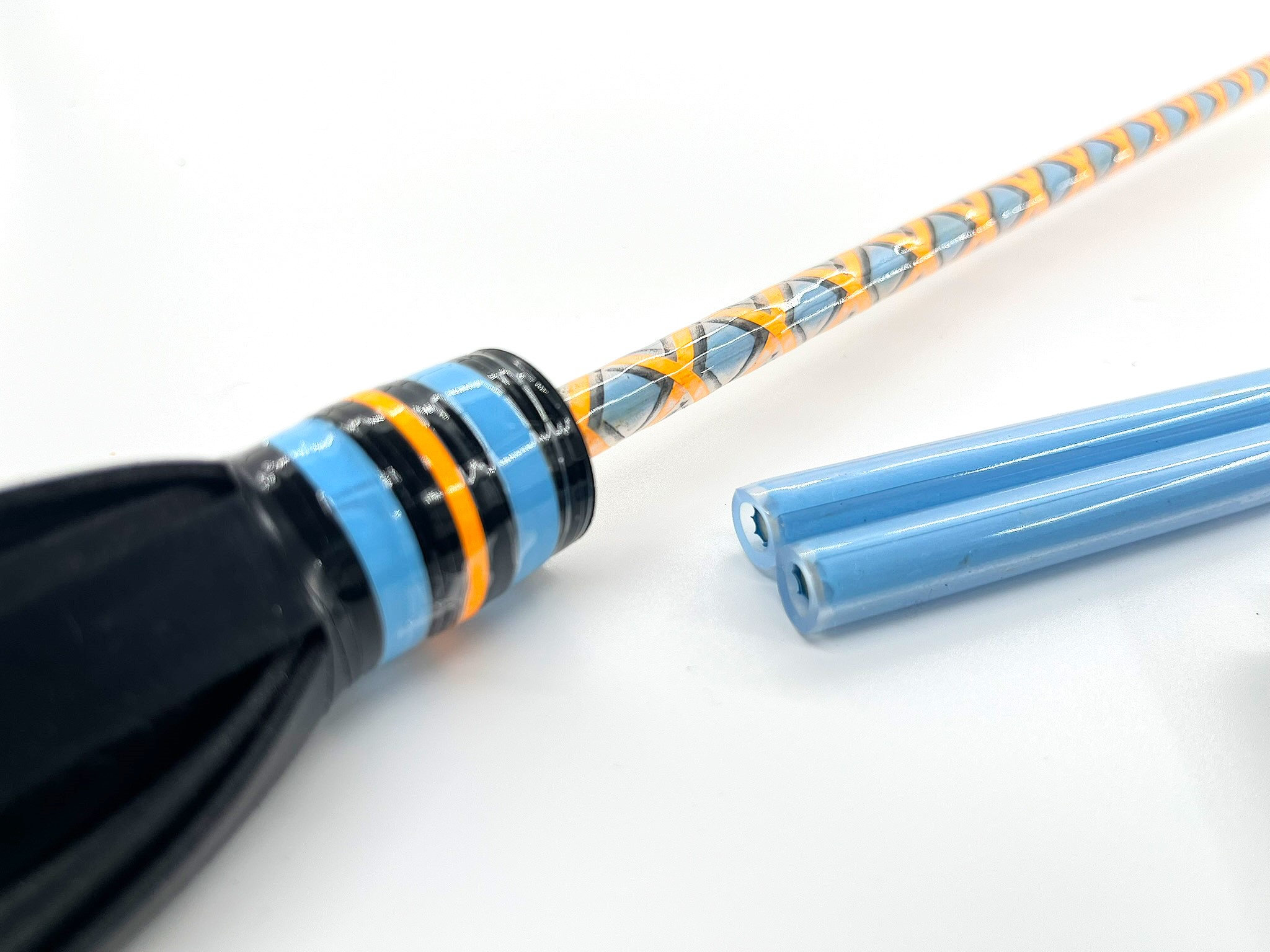 Handmade, full fiberglass flowerstick, blue basic colored with special design.